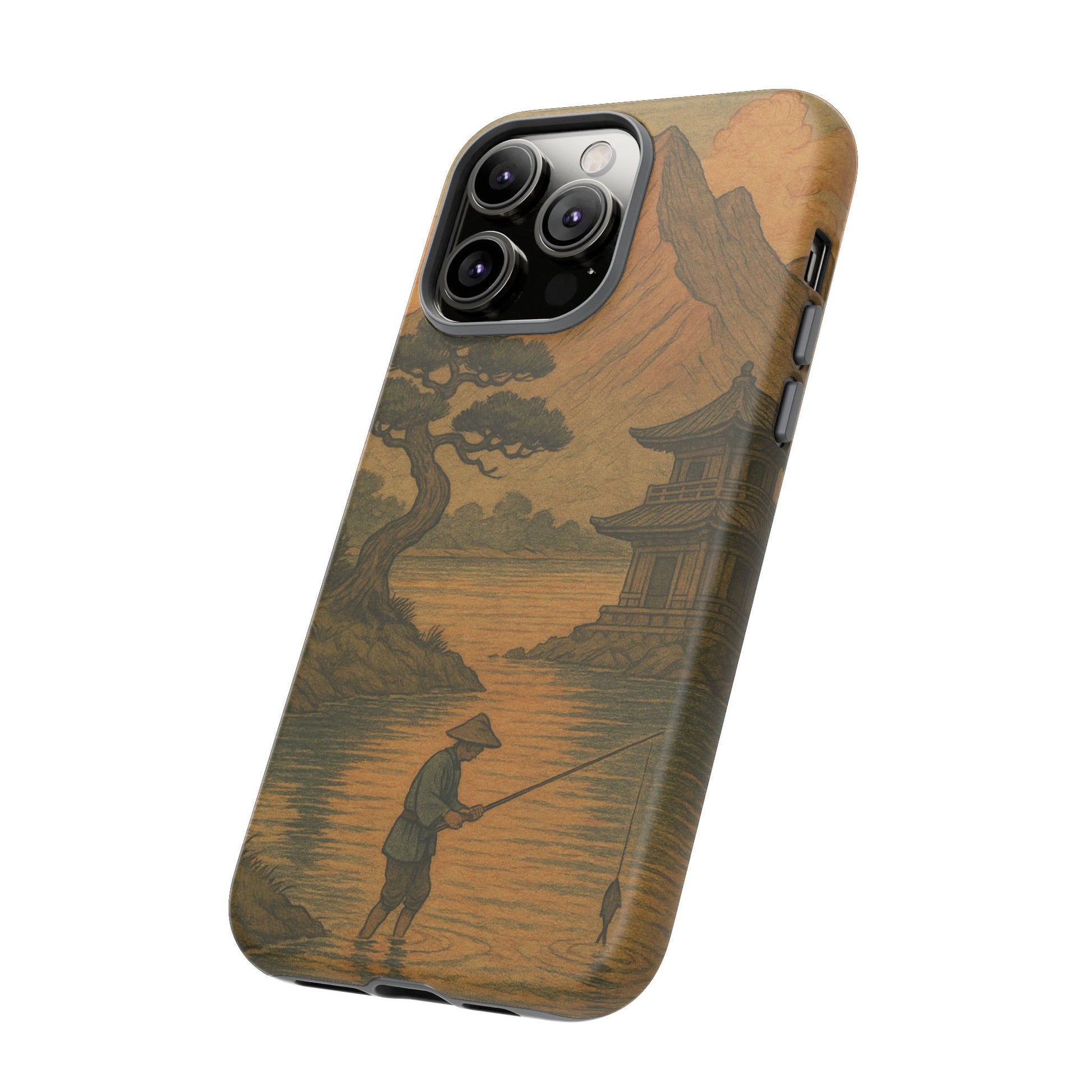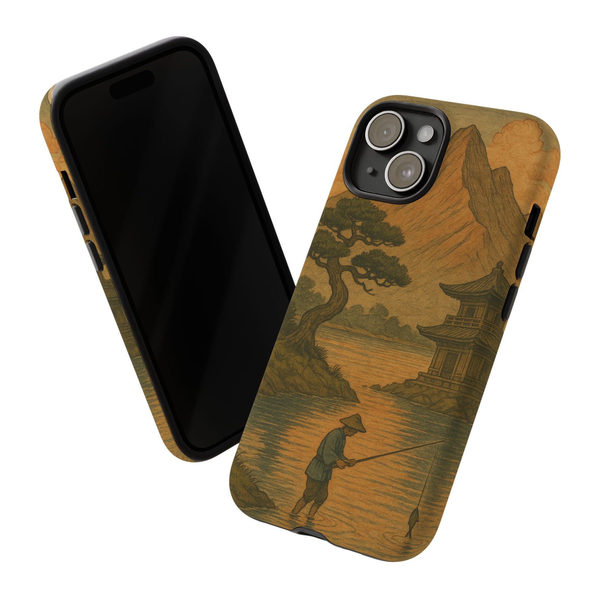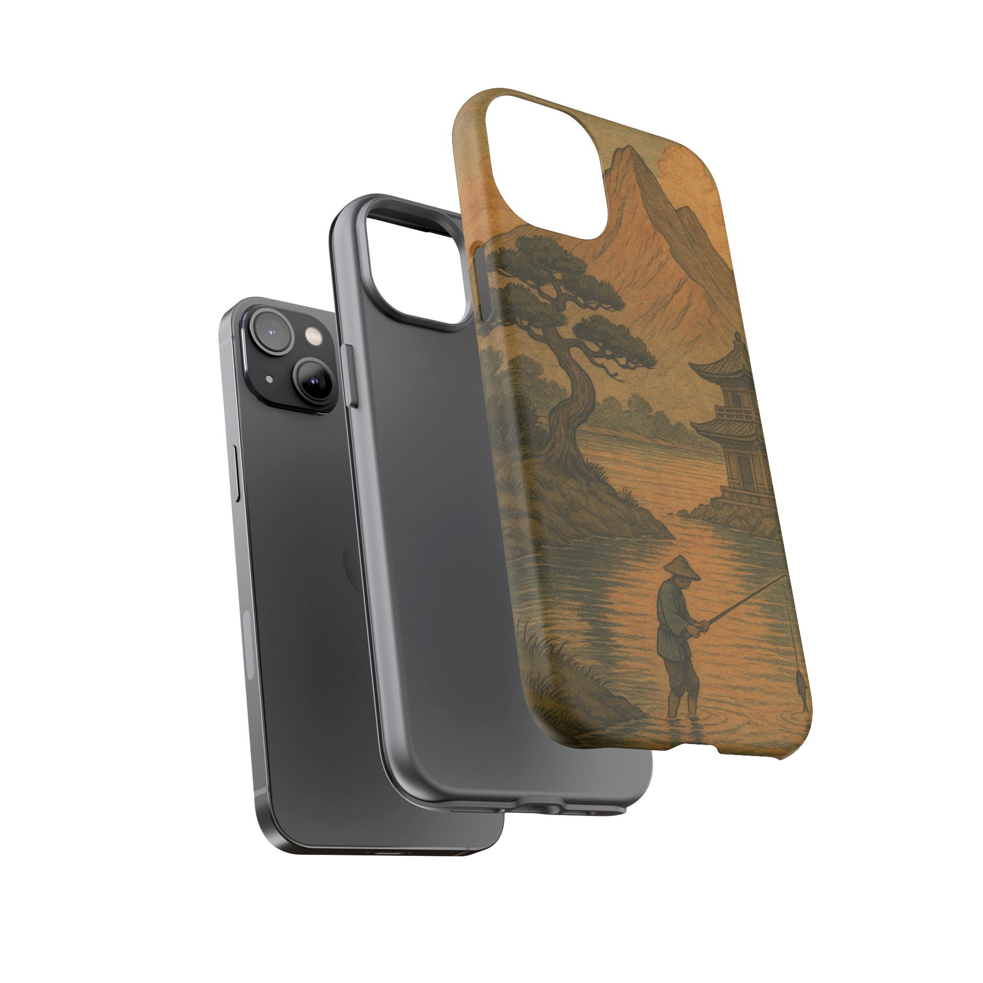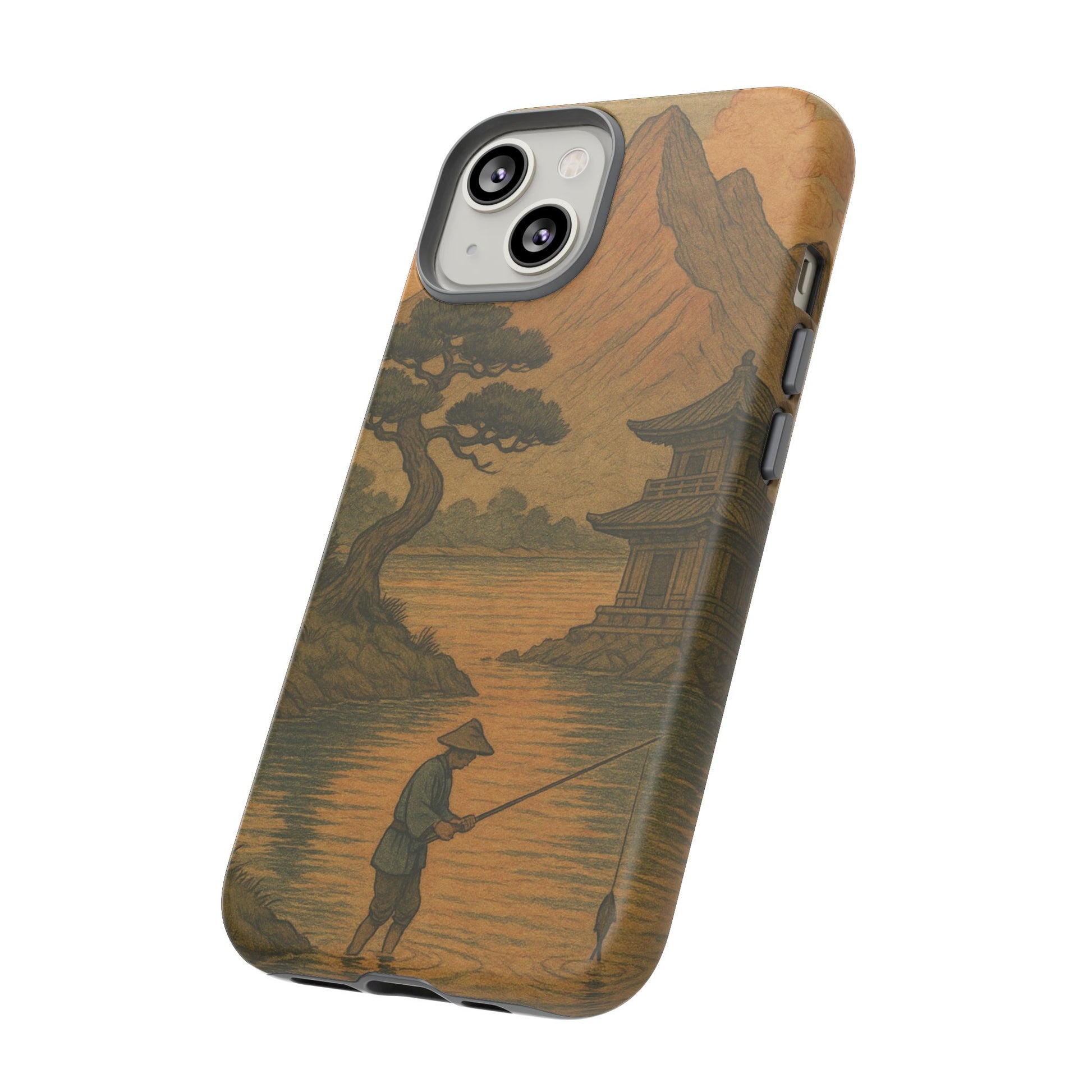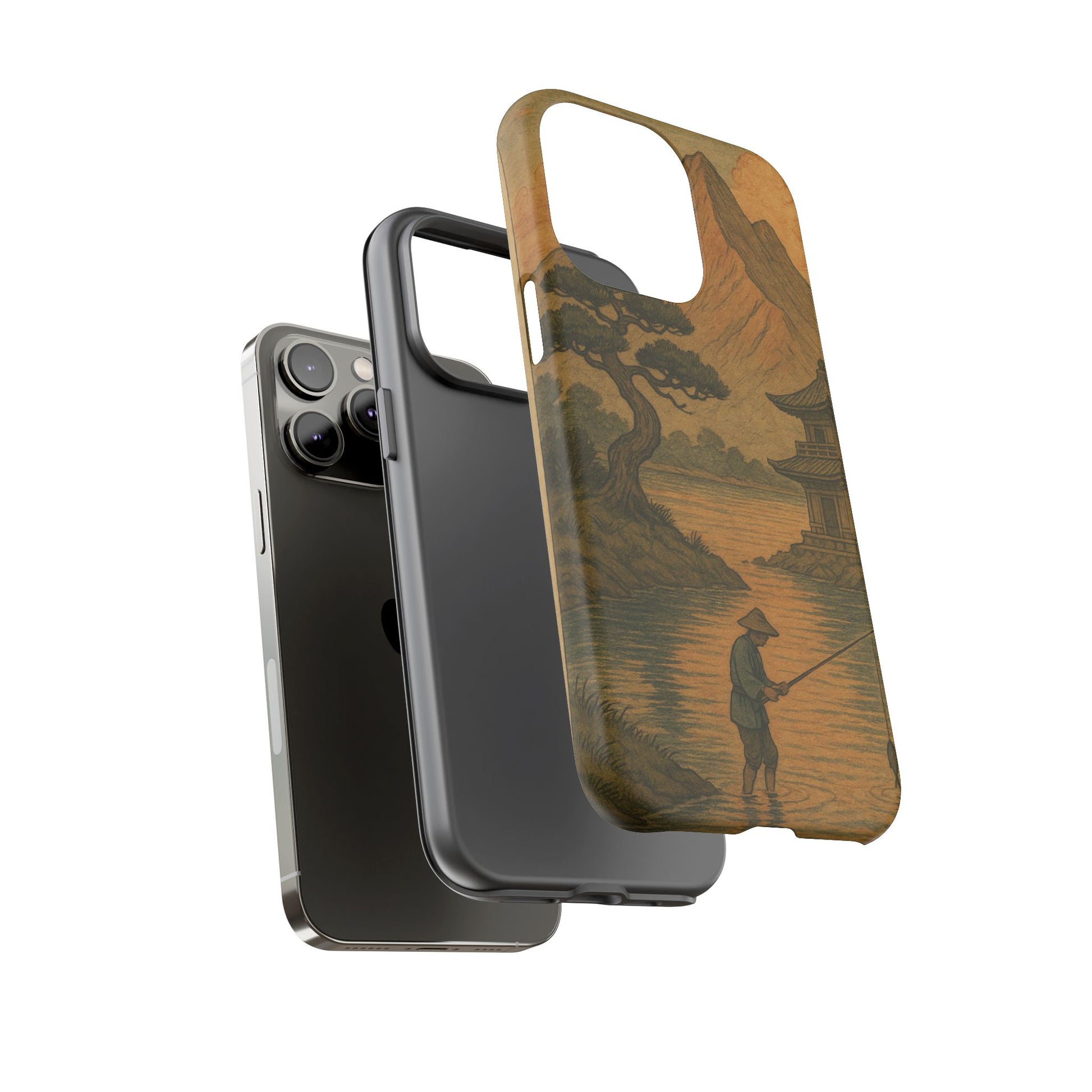 Fisherman. Durable Case. Inspired by the timeless landscapes of Hasui, this tough phone case captures the tranquil glow of a Japanese sunset — where soft pastels meet fading light, and silence settles over water and rooftops.