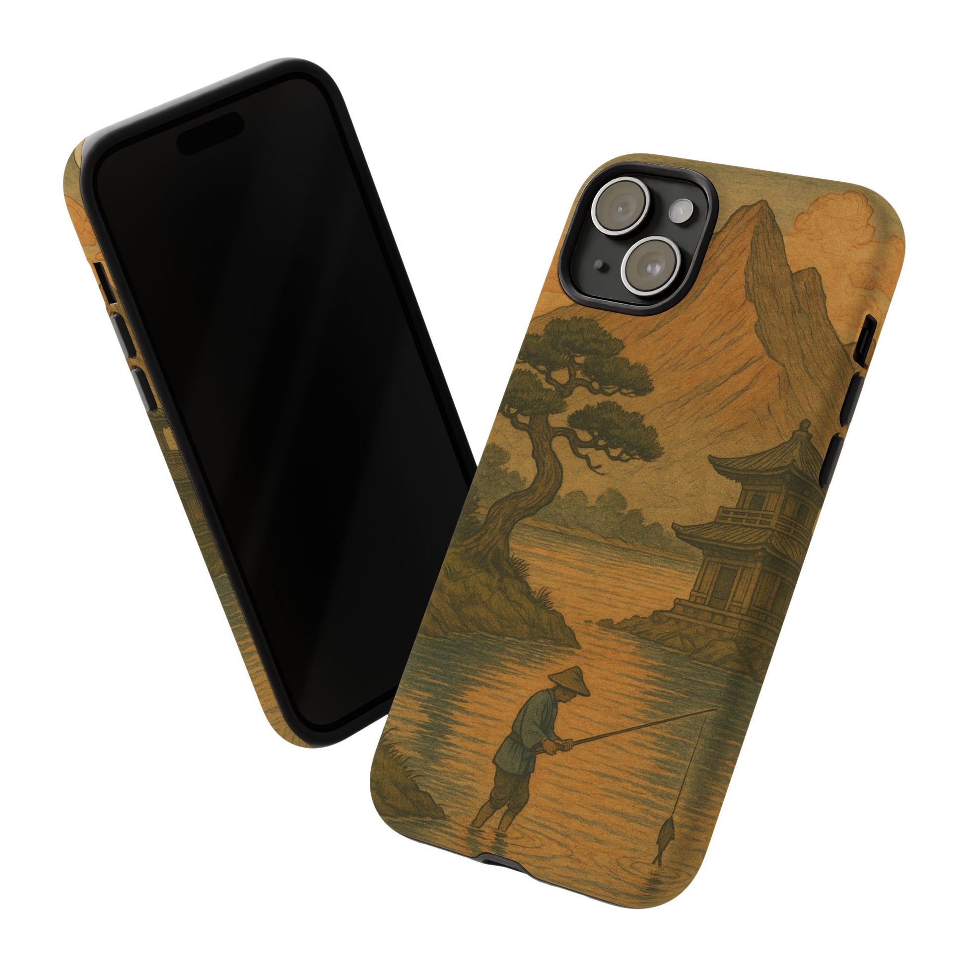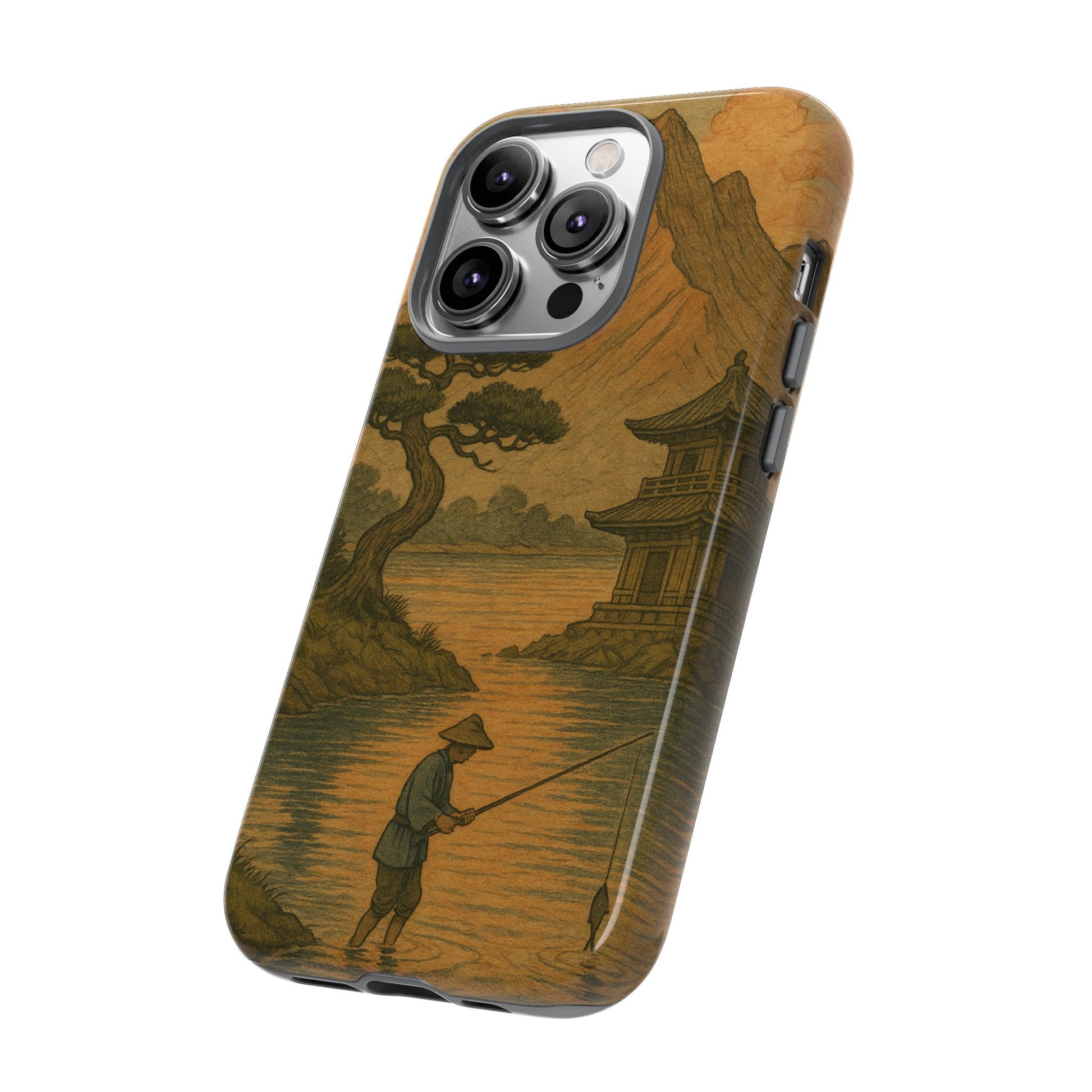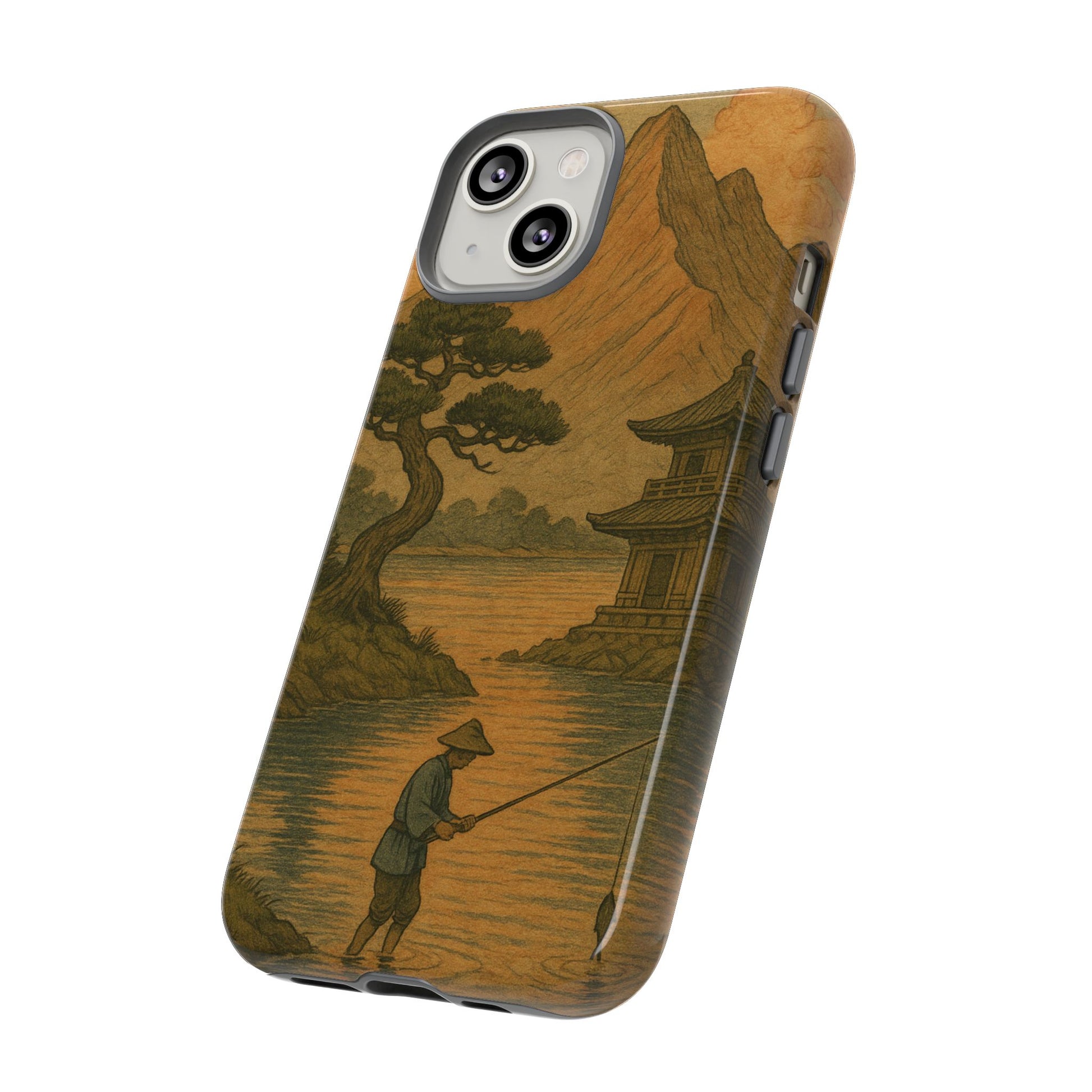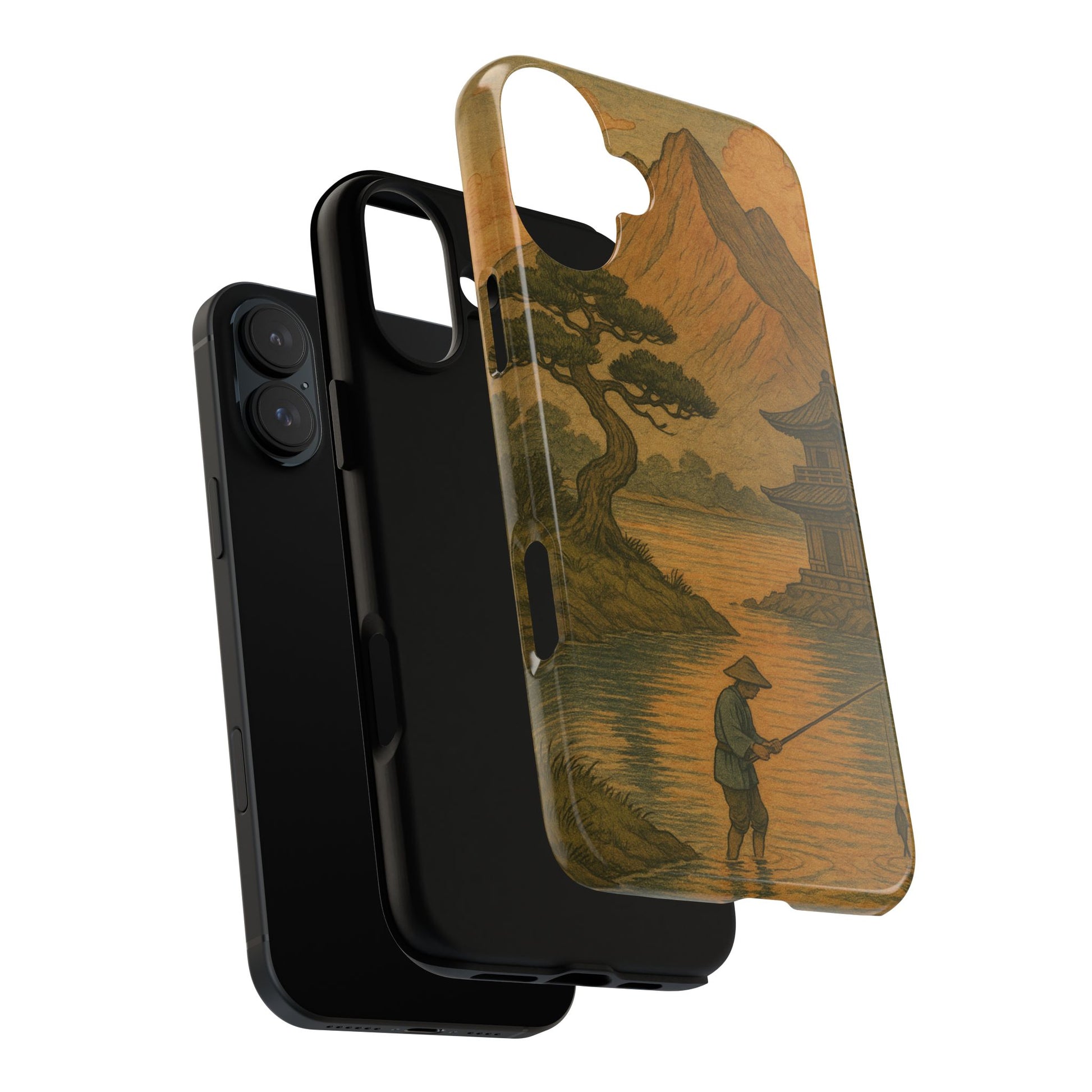 Fisherman. Durable Case. Inspired by the timeless landscapes of Hasui, this tough phone case captures the tranquil glow of a Japanese sunset — where soft pastels meet fading light, and silence settles over water and rooftops.