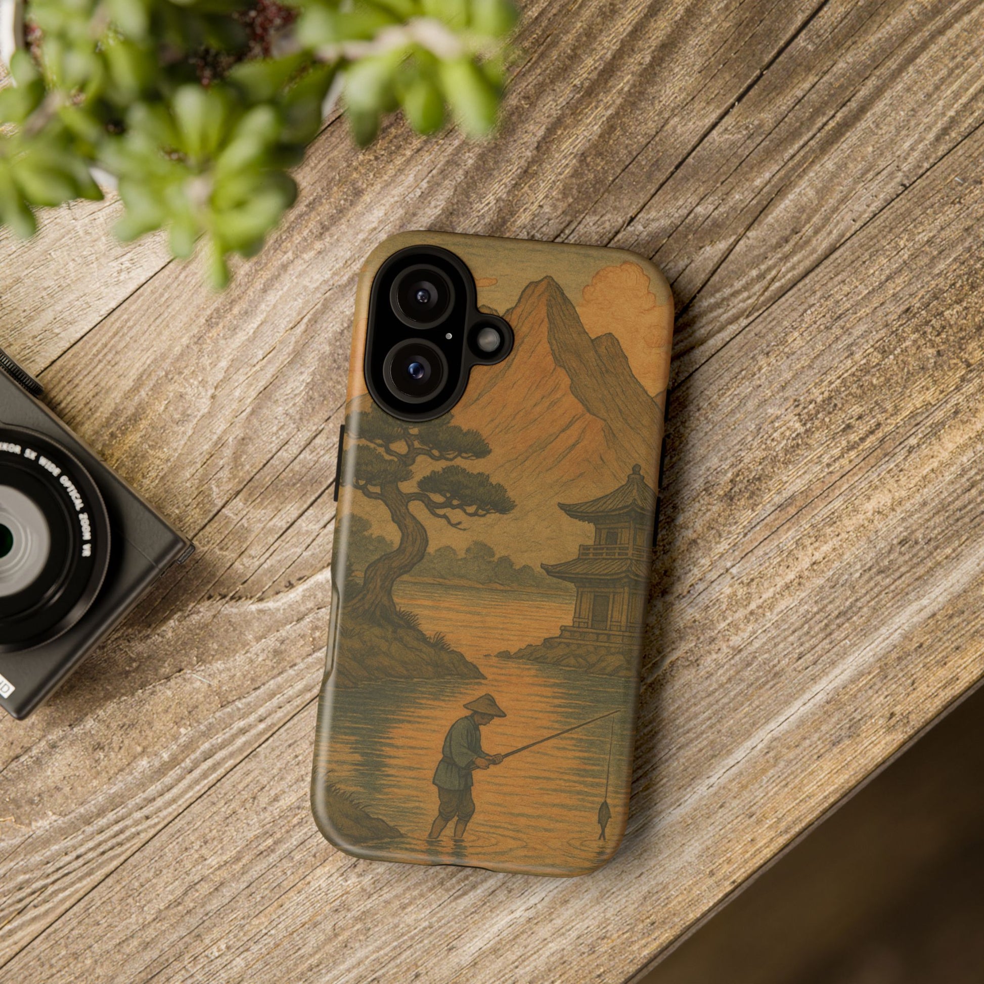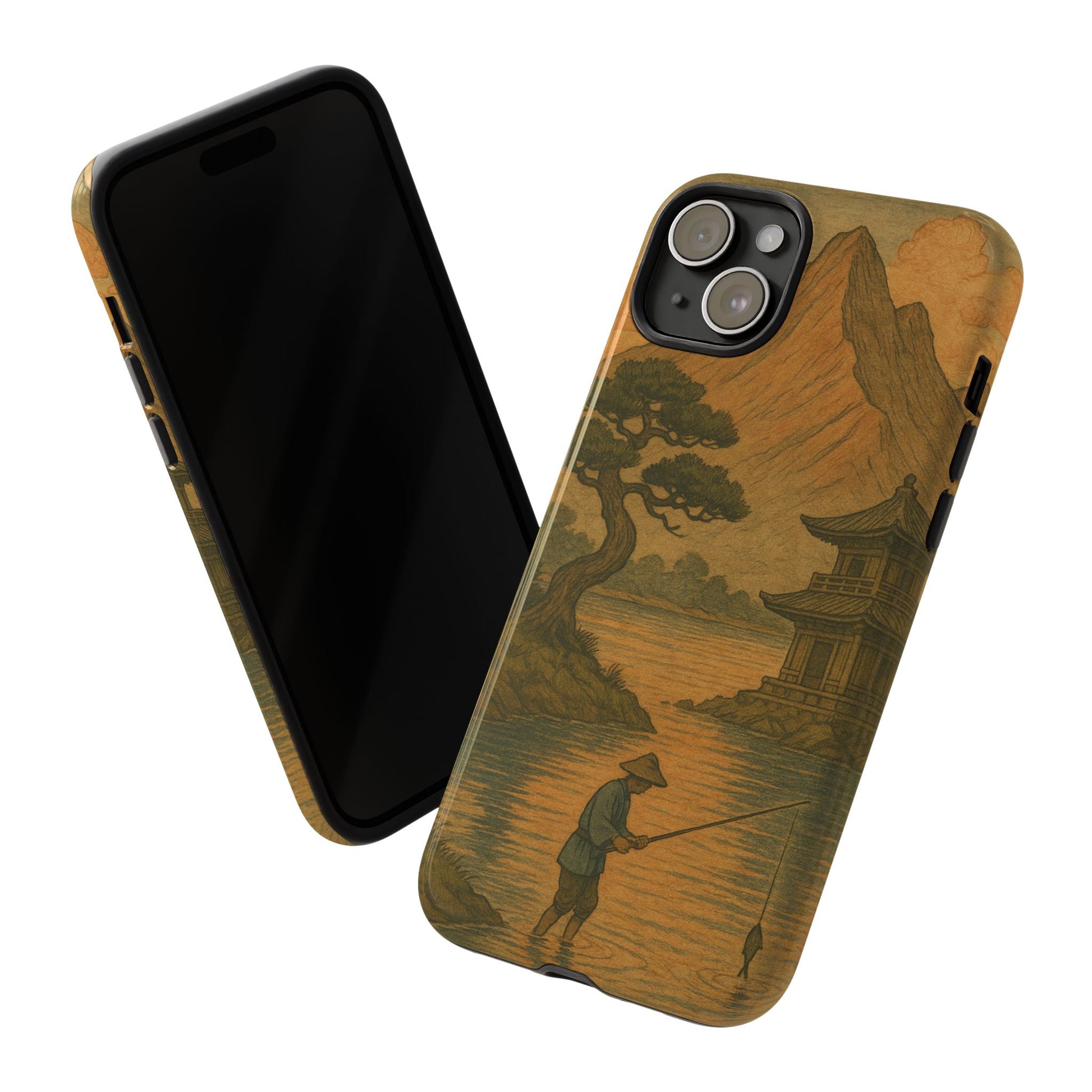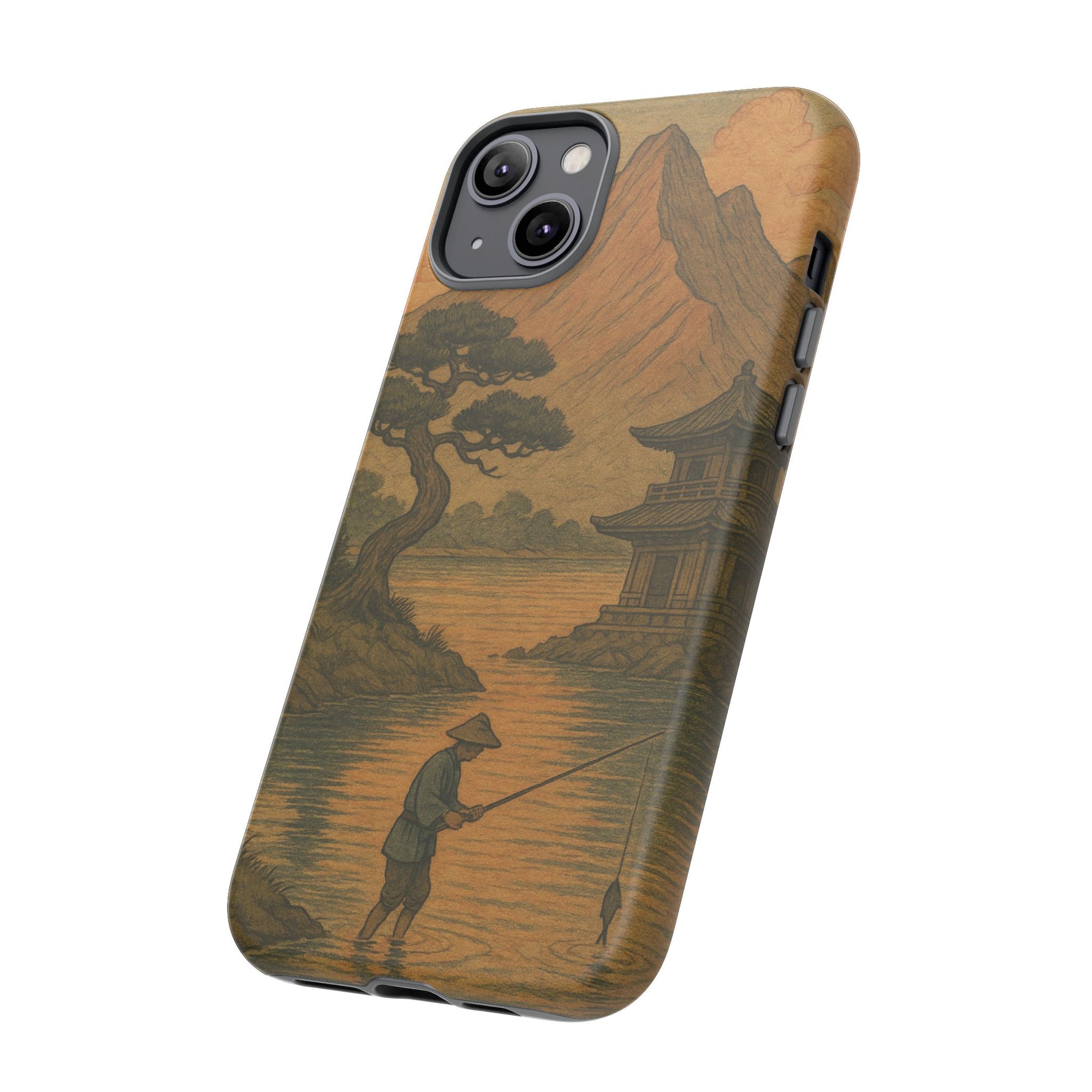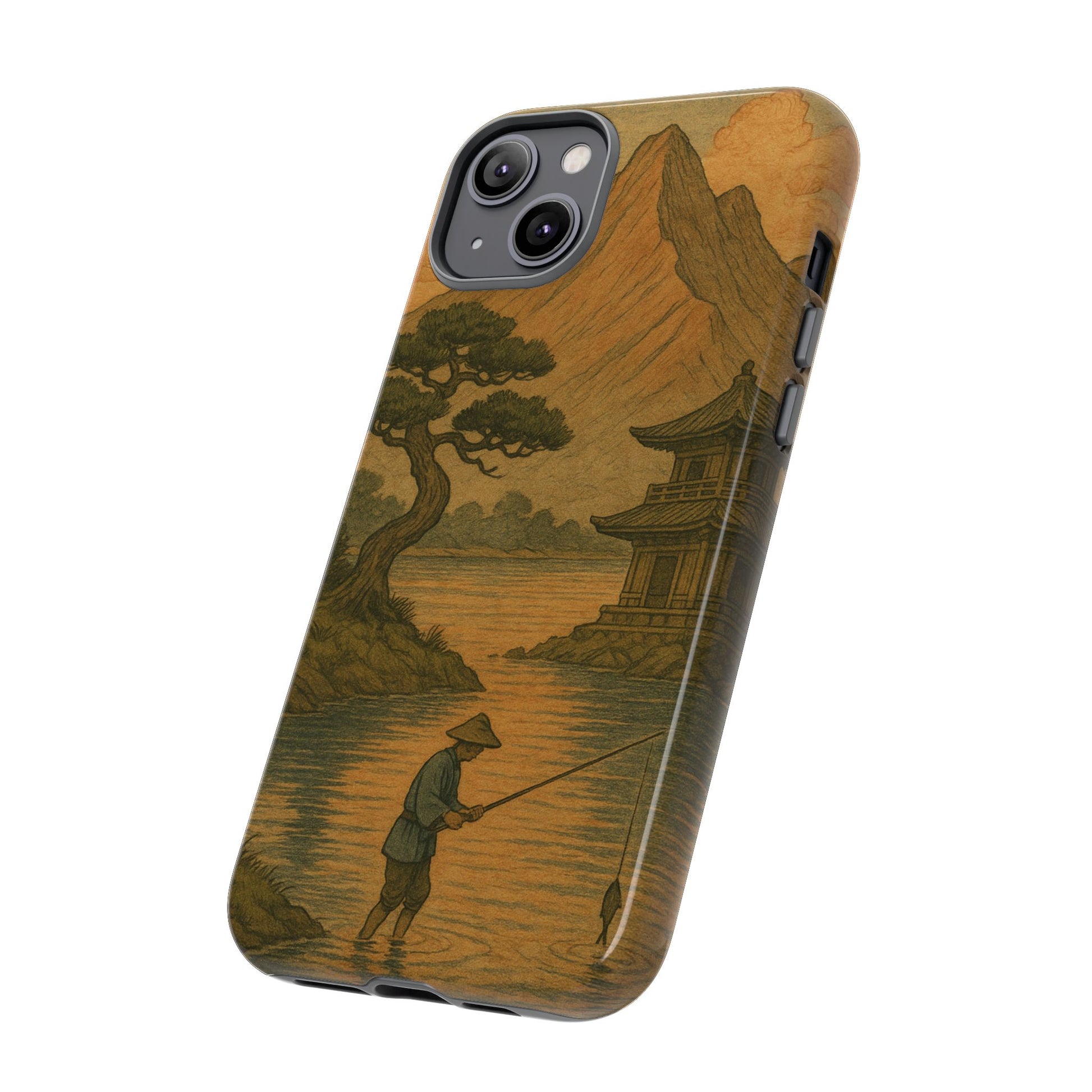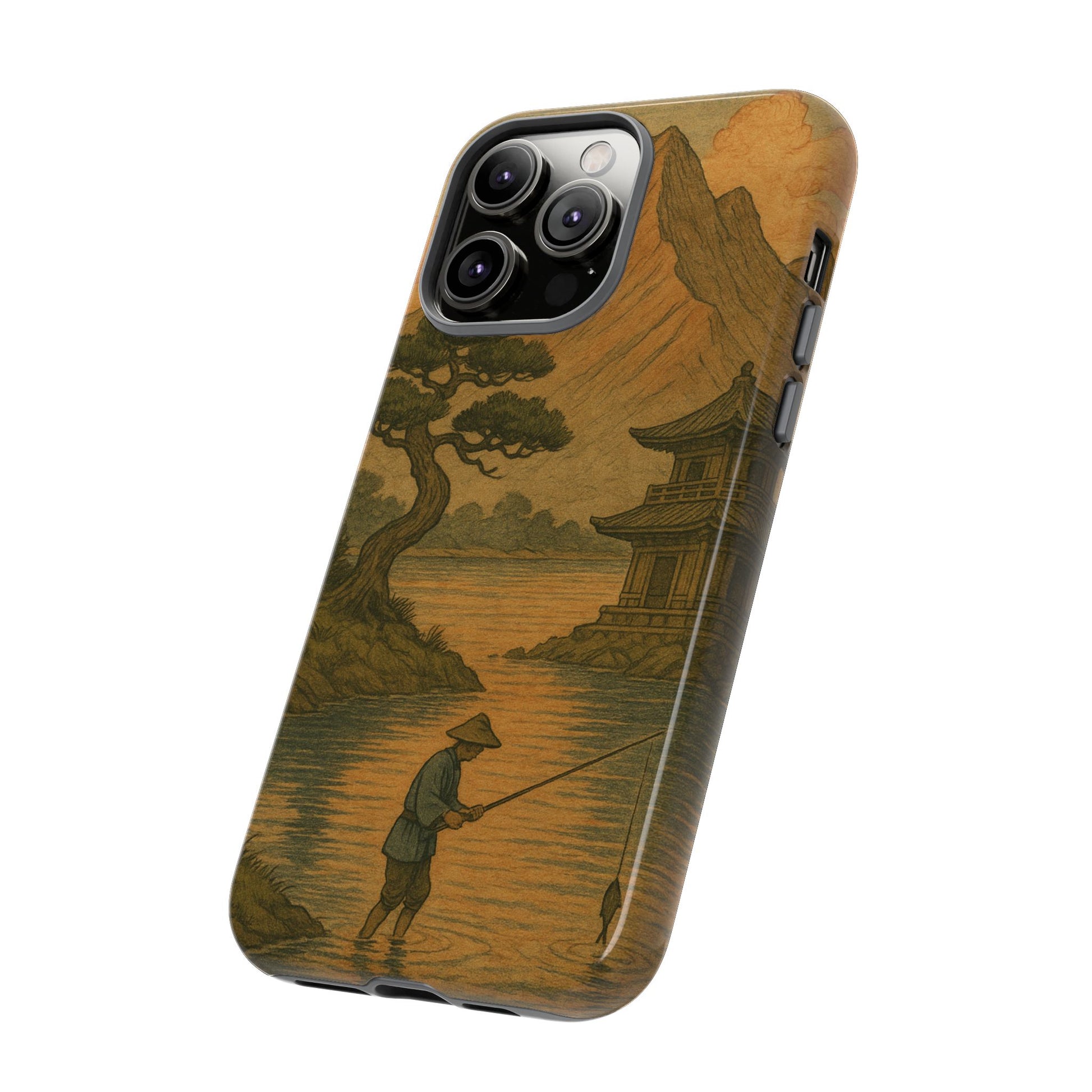 Fisherman. Durable Case. Inspired by the timeless landscapes of Hasui, this tough phone case captures the tranquil glow of a Japanese sunset — where soft pastels meet fading light, and silence settles over water and rooftops.