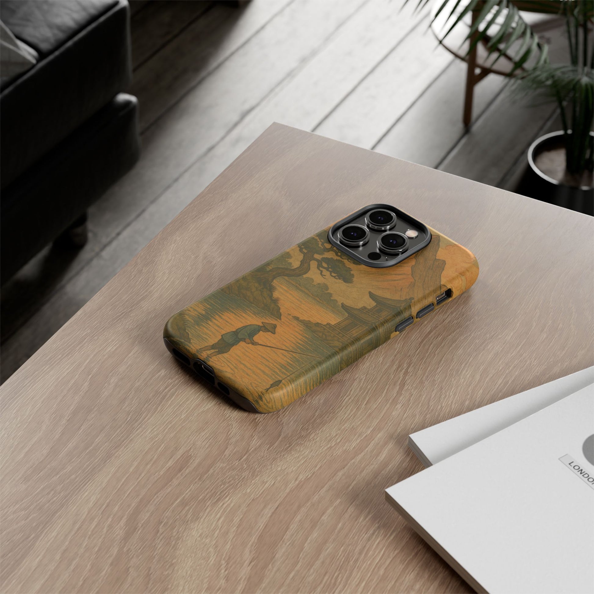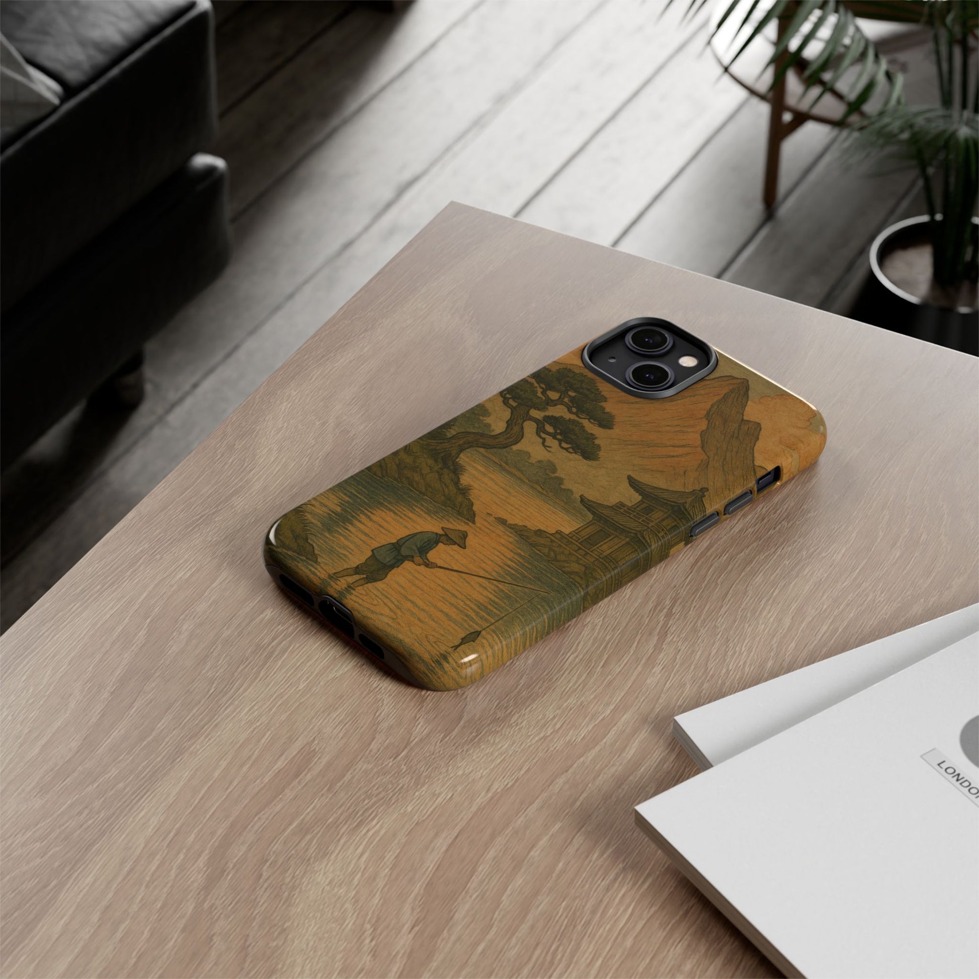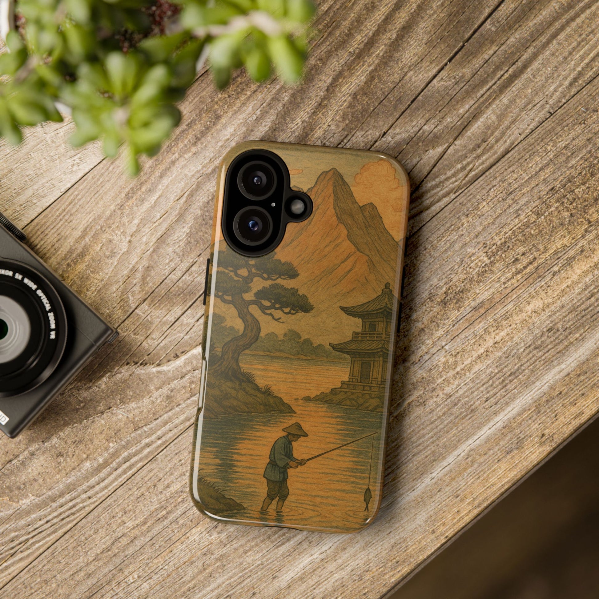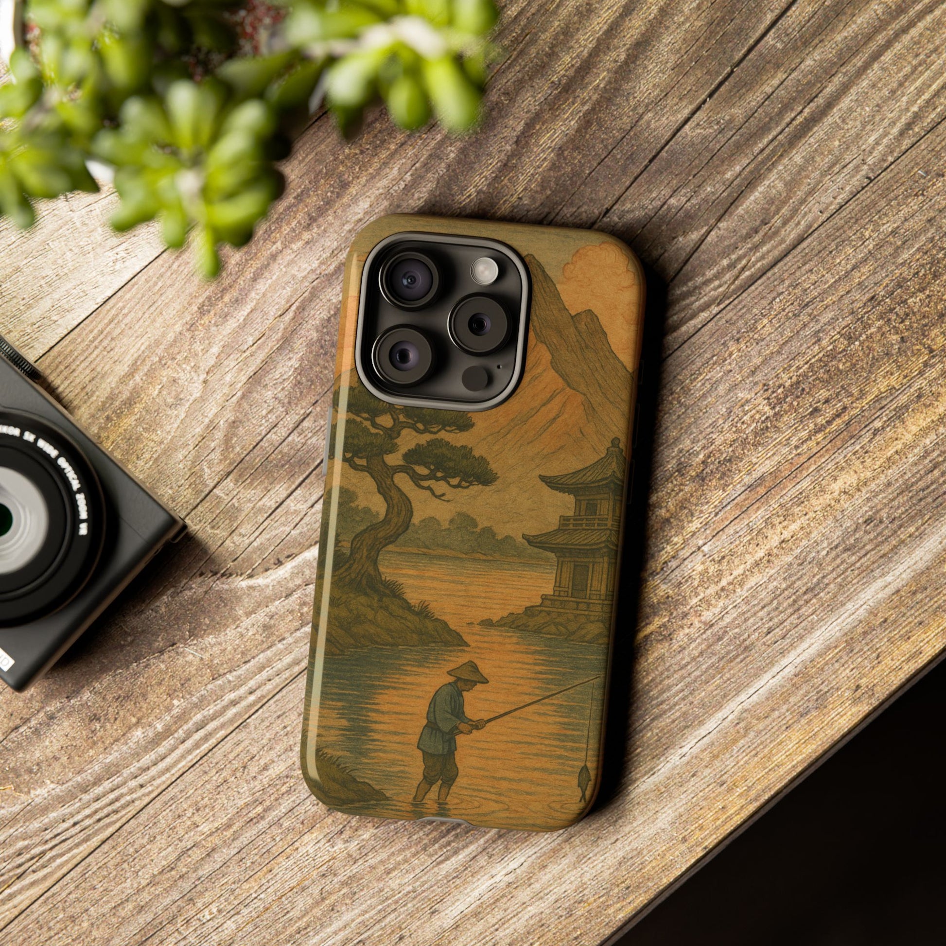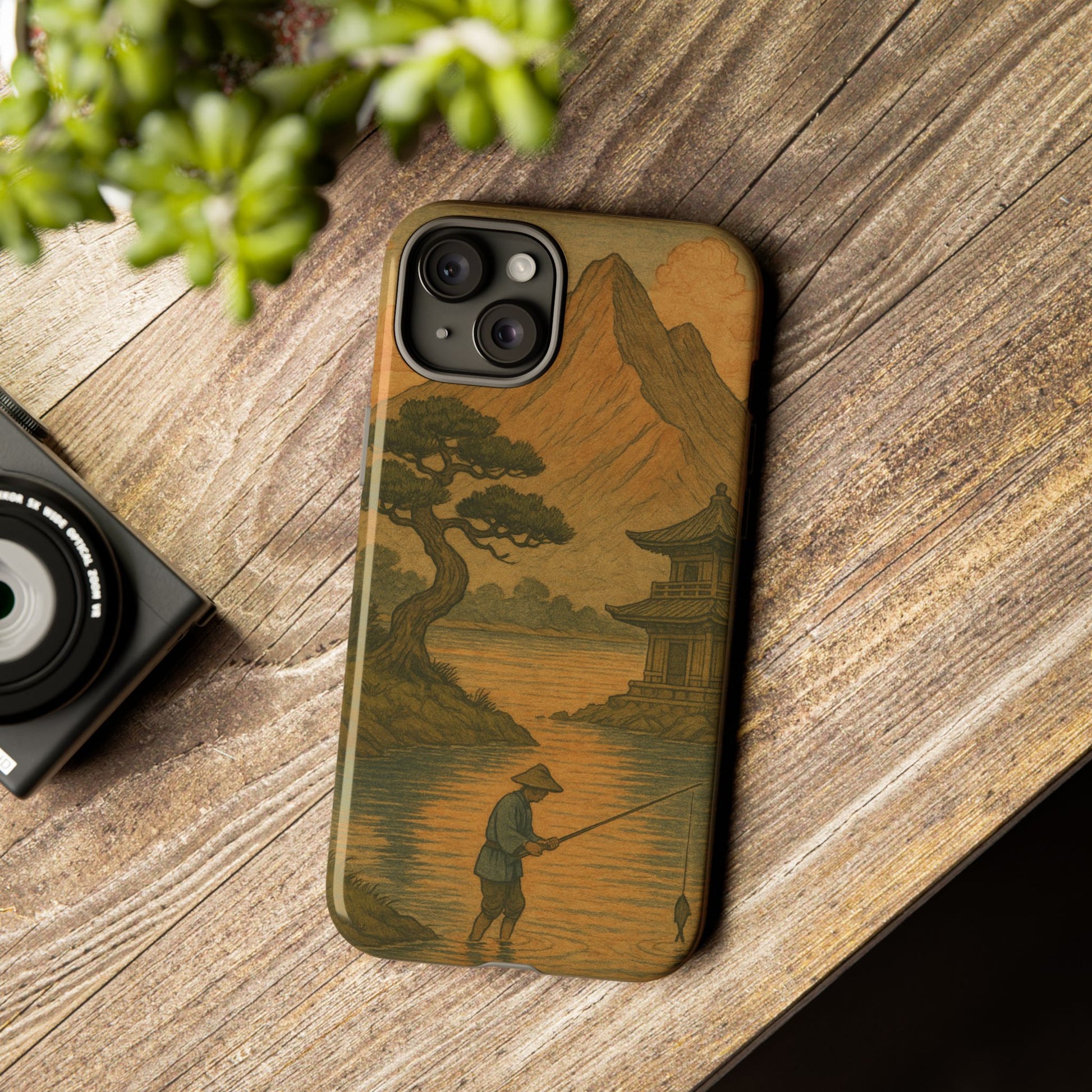 Fisherman. Durable Case. Inspired by the timeless landscapes of Hasui, this tough phone case captures the tranquil glow of a Japanese sunset — where soft pastels meet fading light, and silence settles over water and rooftops.